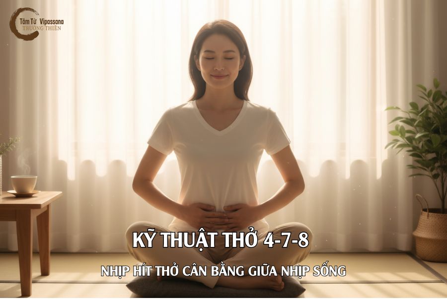 Tìm lại bình an chỉ trong một phút với kỹ thuật thở 4-7-8. Thực hành cùng Trường Thiền Tâm Từ Vipassana – nơi hơi thở trở thành chánh niệm.