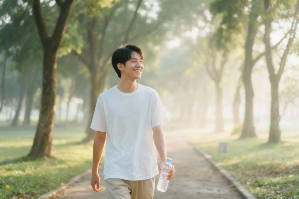 3️⃣ Buổi tối: bước chậm vài vòng sau bữa ăn, thả lỏng và mỉm cười.