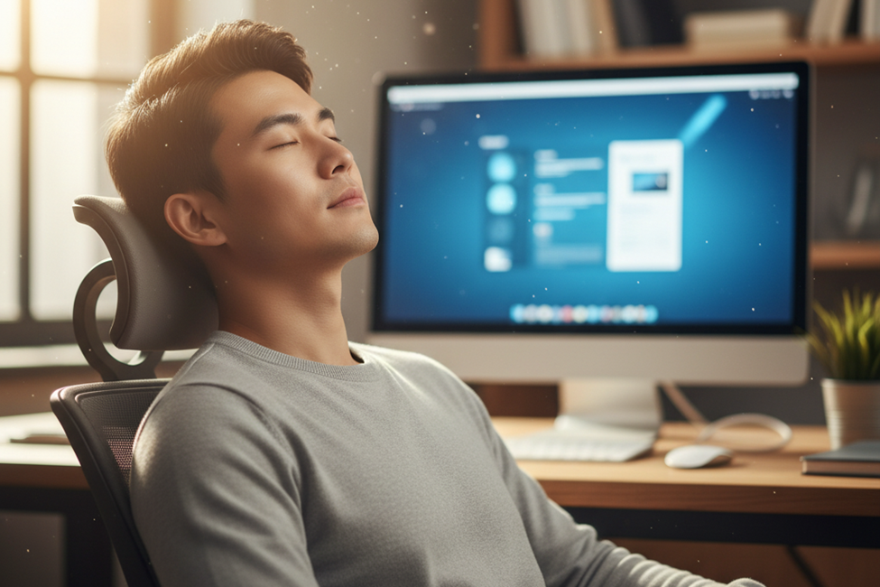 2. Giữa giờ làm – nhắm mắt 30 giây, cảm nhận hơi thở.