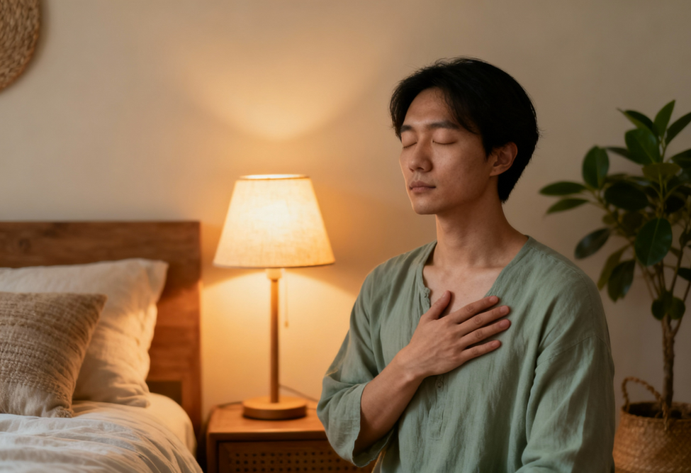 Một phút trước khi ngủ để hít thở, buông bỏ và biết ơn – hướng dẫn thiền giúp tâm an, giấc ngủ sâu và khép lại ngày bình yên.