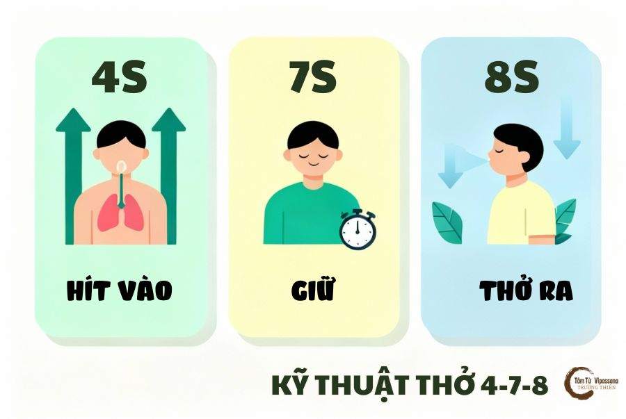 Phương pháp thở 4-7-8 được nhiều hành giả và nhà trị liệu áp dụng để đưa tâm về trạng thái bình ổn nhanh chóng.