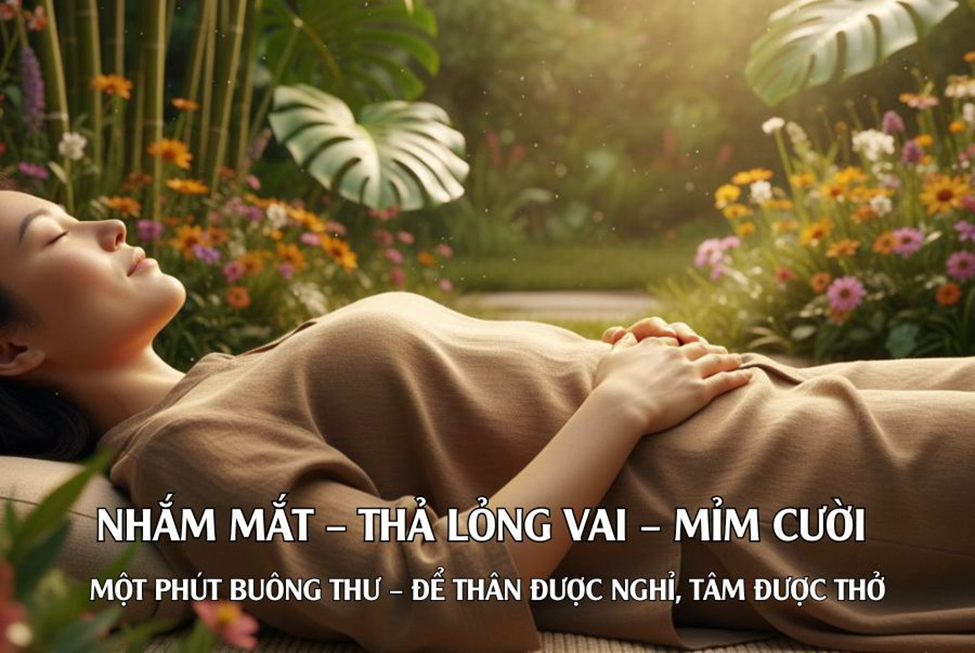 Chỉ cần 1 phút – nhắm mắt, thả lỏng vai, và mỉm cười, ta đã có thể chạm vào sự tĩnh lặng.