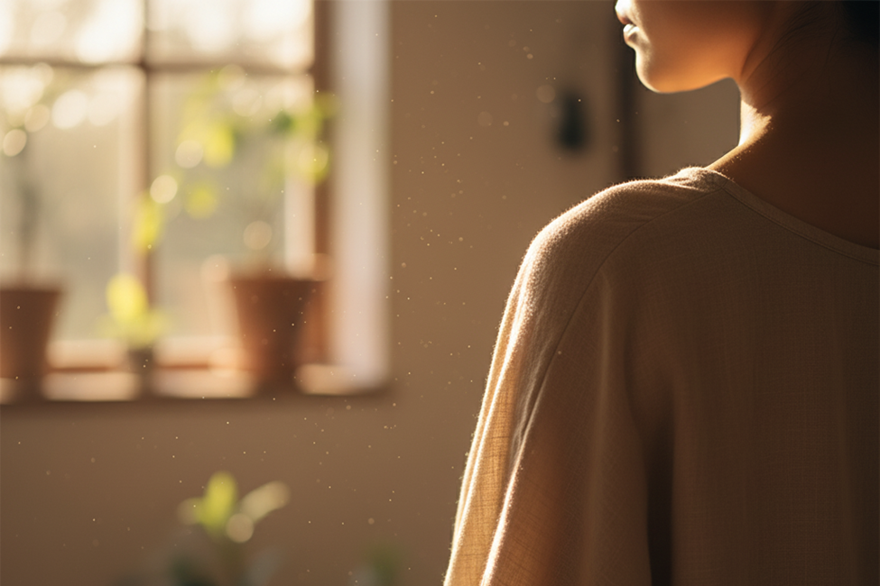 Hít sâu, rồi thở ra thật chậm – tưởng tượng mọi áp lực theo hơi thở mà tan dần.